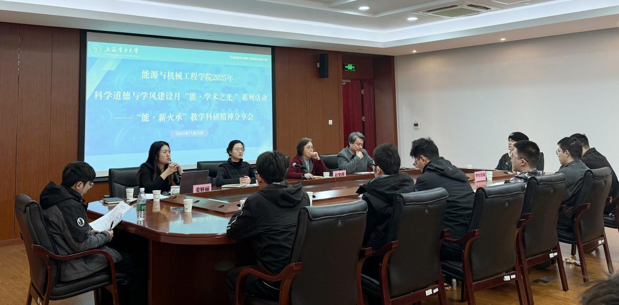 为深入推进科学道德与学风建设,传承能动领域科研精神,引导青年学子对接国家“双碳”战略需求,11月25日下午,能源与机械工程学院在临港学术楼303会议室举办2025年科学道德与学风建设“能・学术之光”系列之“能・薪火承”科研精神分享会。