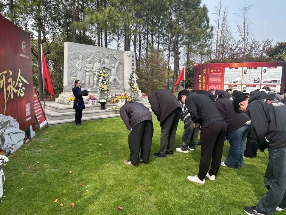 活动现场庄严肃穆,松柏苍翠,寄托着对英烈的无限哀思。在书院烈士纪念碑、“两弹人”纪念园及南汇革命纪念园前,全体成员整齐列队,怀着崇敬之心,向革命先烈敬献鲜花,鞠躬致哀,默哀致敬,以此表达对英烈的深切缅怀和崇高敬意。