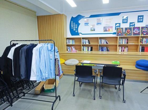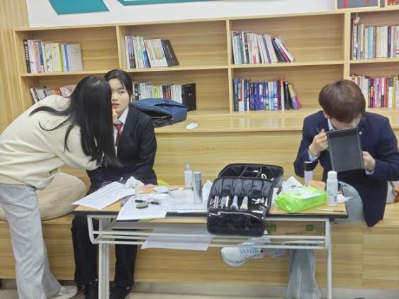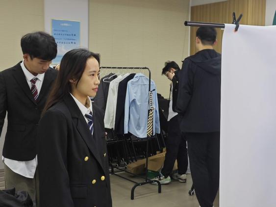 活动现场暖意融融,各服务区域有序排布,吸引了大批学子驻足参与。在“仪容焕新助力”区,学生可免费借用合体的西装、衬衫,并获得快速发型整理与基础妆容打理建议,确保以最佳职业状态进入拍摄。“本来还在为求职证件照的穿搭发愁,学院提供的服务太贴心了,解决了我的燃眉之急。”现场参与活动的学生说道。