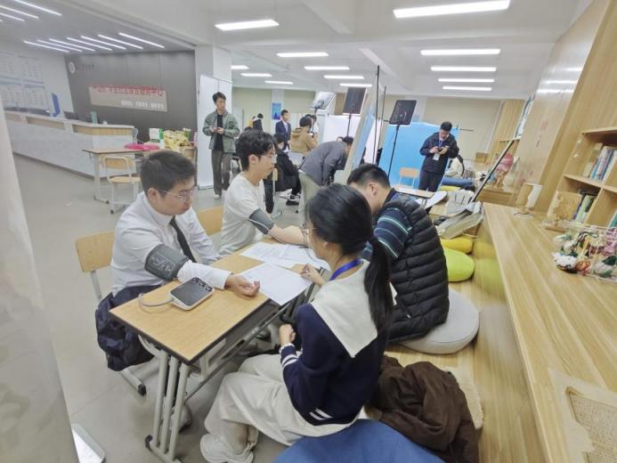 除了形象提升服务,学院还聚焦学子求职体检的实际困惑,在“体检认知先行”区域推出针对性服务。现场不仅提供免费的血压、体重、BMI等基础体征快测,同时列明临港各机构的资质、地址、特色套餐及预约指引,有效帮助学生规避因选择非合规机构或项目缺失导致的职业风险。